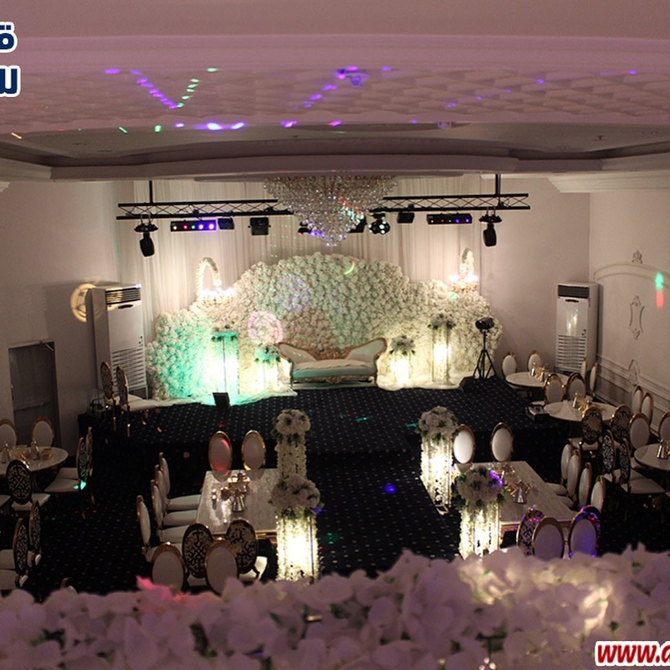 الاسعار : سعة ل 150 سيده قسم نساء من السبت الى الاربعاء 7500 ﷼ ، الخميس والجمعه 8500 ﷼ قسم النساء يشمل : بوفيه (6) متر من الجونه ، تورته (3) ادوار للعروسه ، مناديل ، شاي + قهوه ، عاملات + المشرفه ، عصيرات طازجه ، کوشه بالورد الصناعي، درج بلورد الصناعي وبيبي لايت ممر ب الشمعدان المضي ، لیزارات ، بخار ، دي جي الزفه ، كشاف العروسه ، مباخر مع الفحم