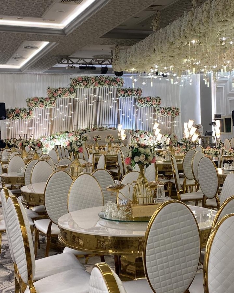 الاسعار : بداية الاسبوع 18 الف ﷼ / الويكند 21 الف ﷼ <قاعة النساء تتسع ل 500 شخص تشمل : بوفيه (6) متر من القائمه الذهبية ، تورته (3) ادوار للعروسه ، مناديل ، شاي + قهوه ، عاملات + المشرفه ، عصيرات طازجه ، ليزرات ، كشاف العروس قاعة الرجال 400 شخص + الحوش + بيت الشعر