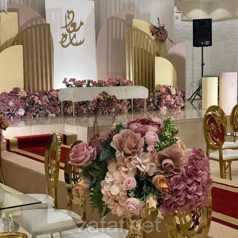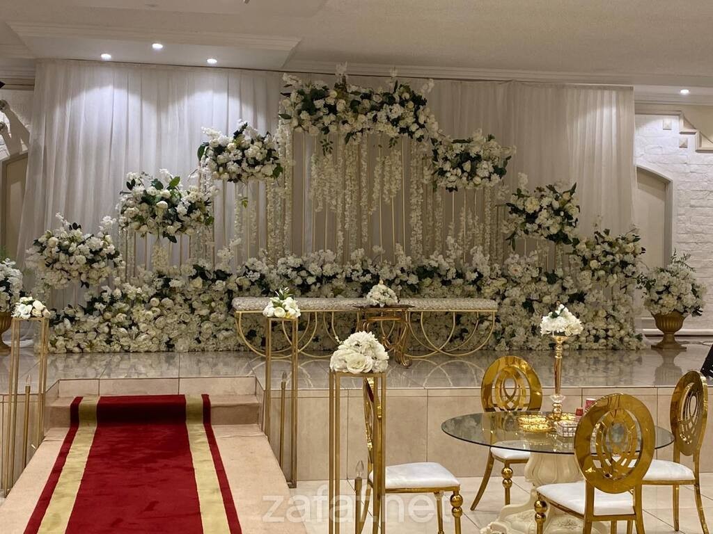 يشمل : البوفيه + سماعات و مشغله دي جي + مشرفه + قهوه و شاي والعصيرات + كوشه + ضيافة الطاولات + الكيكه تبع العروس